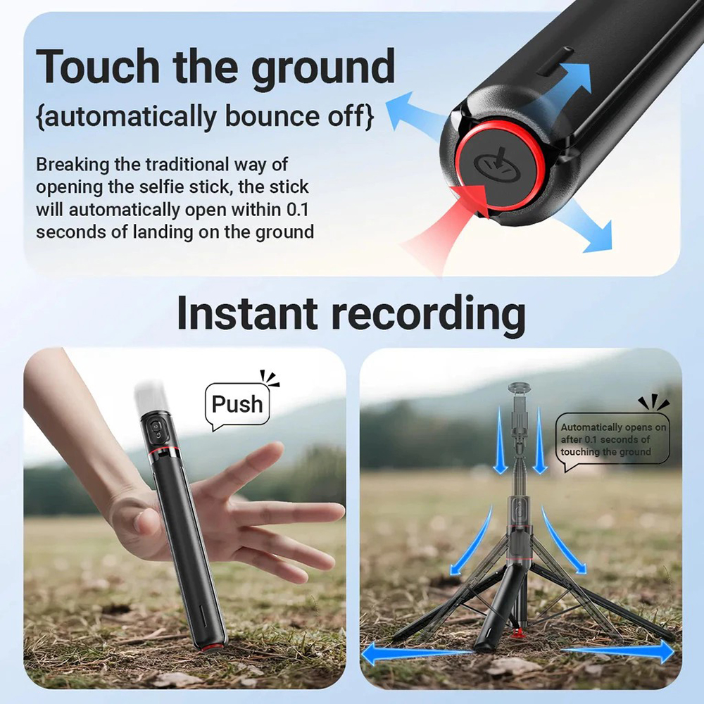 - Auto-Locking Tripod Legs – Deploys/stows in seconds.