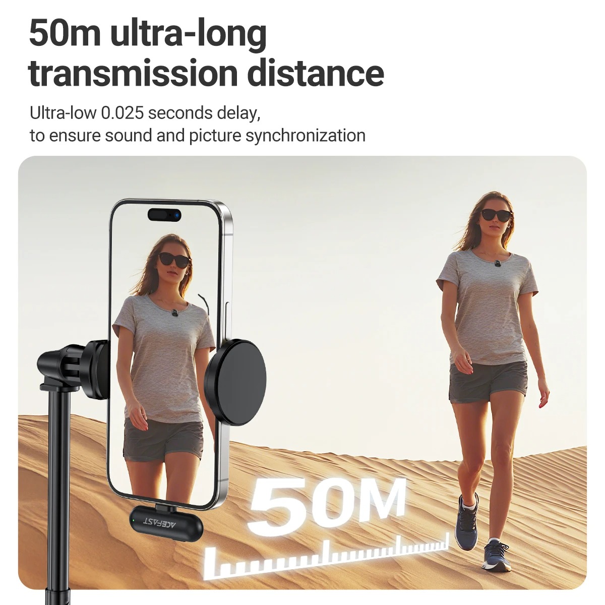 ACEFAST R1 Dual Wireless Lavalier Microphone 360° Omnidirectional Deep AI Noise Reduction Low Latency Lossless Sound