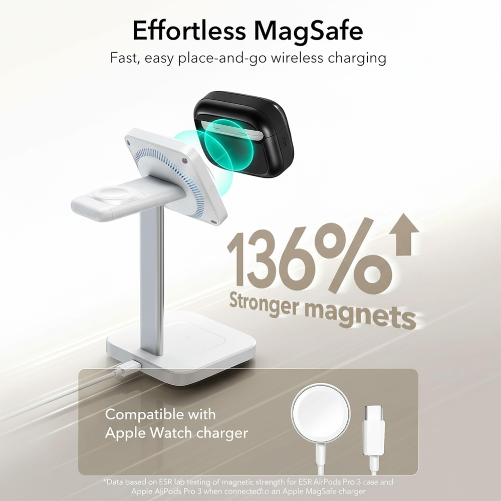 Versatile Charging Options: Compatible with Apple Watch chargers and MagSafe; strong magnets built into the case ensure a secure connection with MagSafe chargers, allowing you to enjoy tap-and-go wireless charging for your earbuds