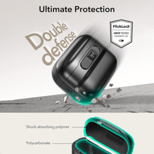 - Drop-Proof FlickLock Lid: Strong magnets in the top and bottom of the lid with a holding force of 750 g and an internal latch keep your AirPods locked inside the case; get double the defense for your charging case with an ultra-hard shell and flexible, shock-absorbing core