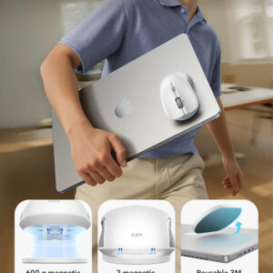 Portable Design: The ESR MagMouse for students, teachers and office workers features a magnetic base so it snaps on and off easily, making it ideal for mobile office use; carry it effortlessly and use it anywhere with the mouse case; NOTE: The mouse base is attached with a reusable residue-free adhesive