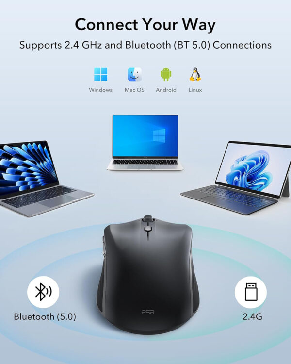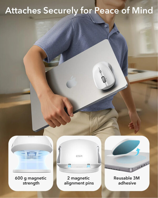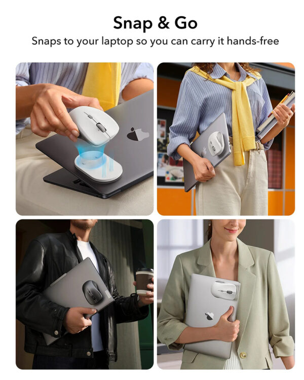 ESR MagMouse Snap-to-Carry Wireless Mouse, Rechargeable Wireless Mouse for Laptop with Built-in Charging Cable, Reusable Adhesive Holder, BT 5.0 + 2.4 GHz Connectivity, Silent, Ergonomic