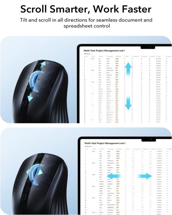 4-way Scrolling: the 4-way scroll wheel lets you breeze through websites and documents vertically, while side-tilt enables you to glide effortlessly across spreadsheets, timelines, and wide images