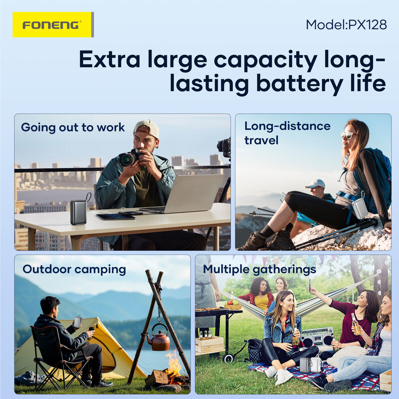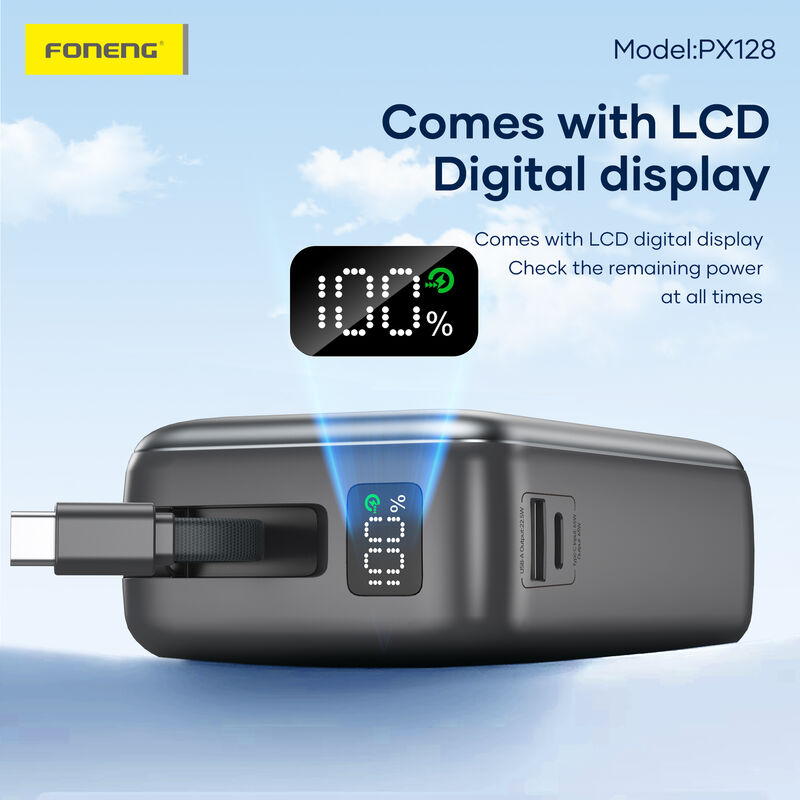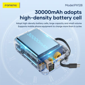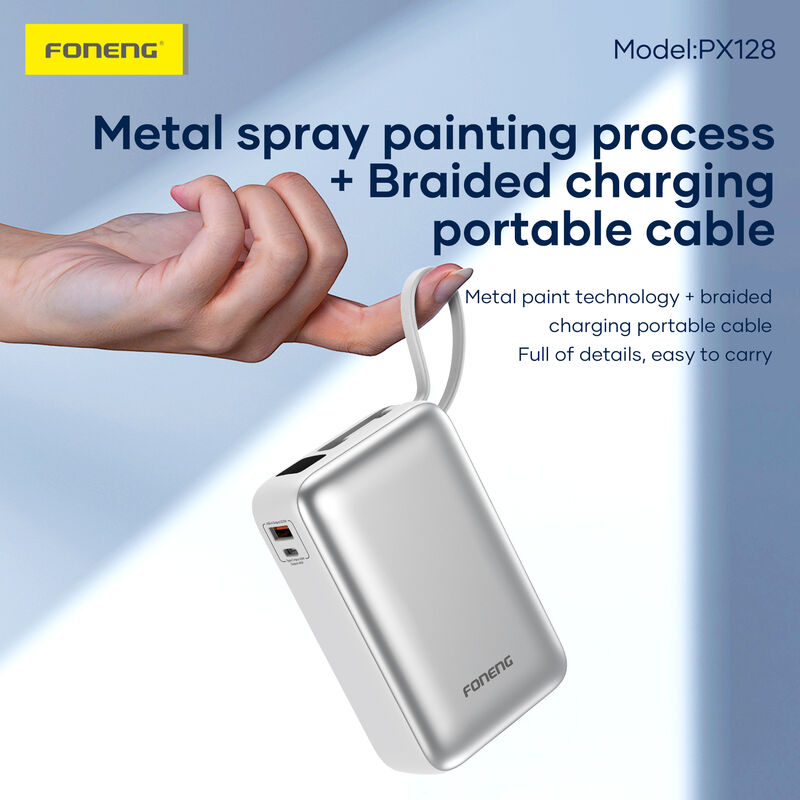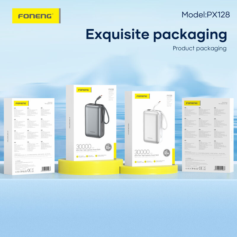 Foneng PX128 30000mAh 65W Power Bank with Built-in USB-C Cable