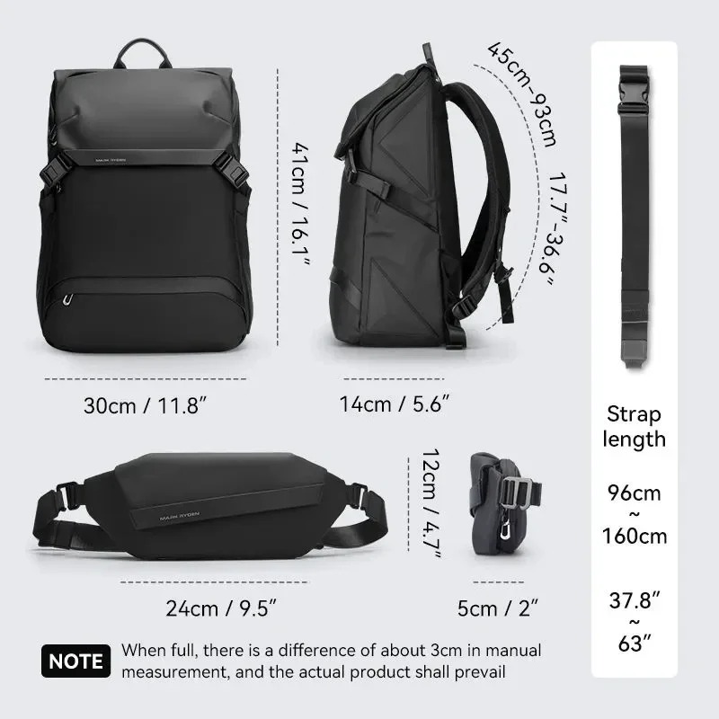 MARK RYDEN MR2859 Stylish Men Backpack Dual Shoulders Bag with Detachable PU Leather Crossbody Bag