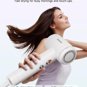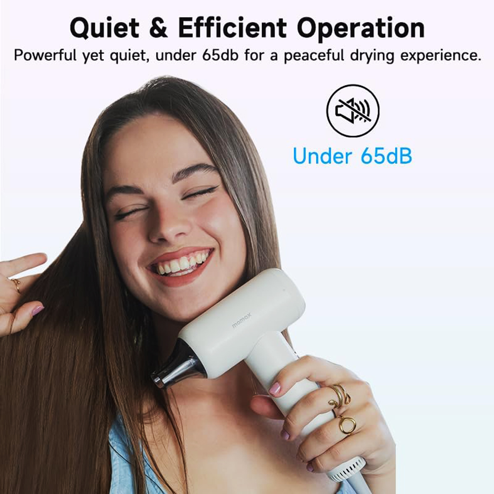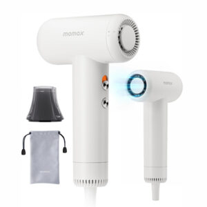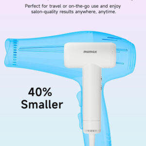 Momax 1-Care Hair Mini Ultra Speed Ion Hair Dryer, 110,000 RPM Brushless Motor, Negative Ionic for Fast Drying, Low Noise, Portable with Magnetic Nozzle, Lightweight Design for Home and Travel