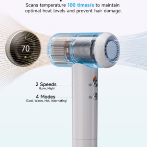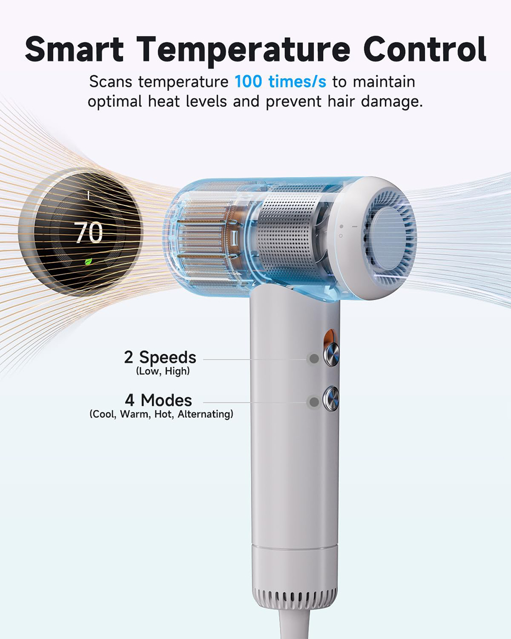 - Powerful motor that dries hair super fast, up to 110,000 RPM
