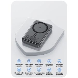 Compact and Portable: Easy to hold with one hand, easy to carry out. In pursuit of the ultimate magnetic charging experience, we have repeatedly optimized the internal components and selected high-density lithium polymer batteries to redefine the new magnetic ultra-thin form factor