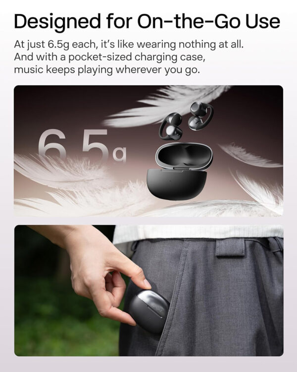 Personalized Clip-On Fit: The flexible nickel-titanium plate and soft silicone grip conform to your ear for security and comfort. At just 6.5g, each earbud is virtually unnoticeable through all-day wear.