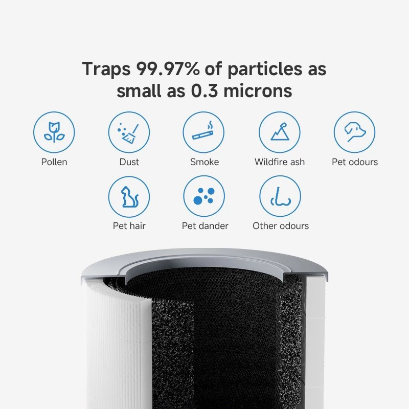 【3-in-1 filter】Traps particles as small as 0.3 microns