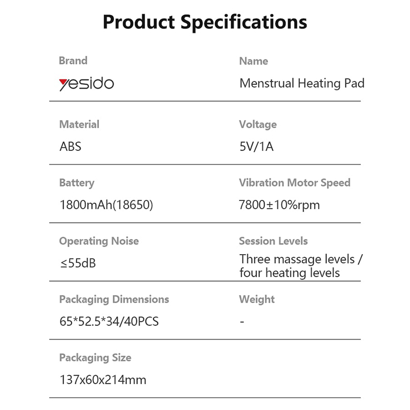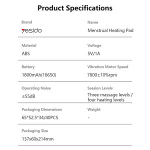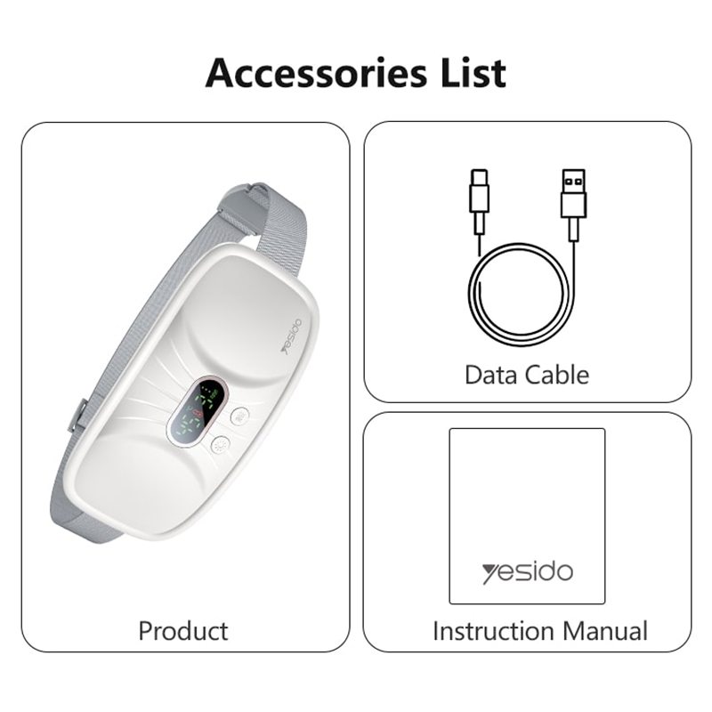 Long-Lasting 1800mAh Rechargeable Battery: Powered by a high-capacity 1800mAh lithium battery, the Yesido MG28 provides up to 14 hours of soothing comfort on a single charge. Feel warmth and relief throughout the day without frequent recharging.